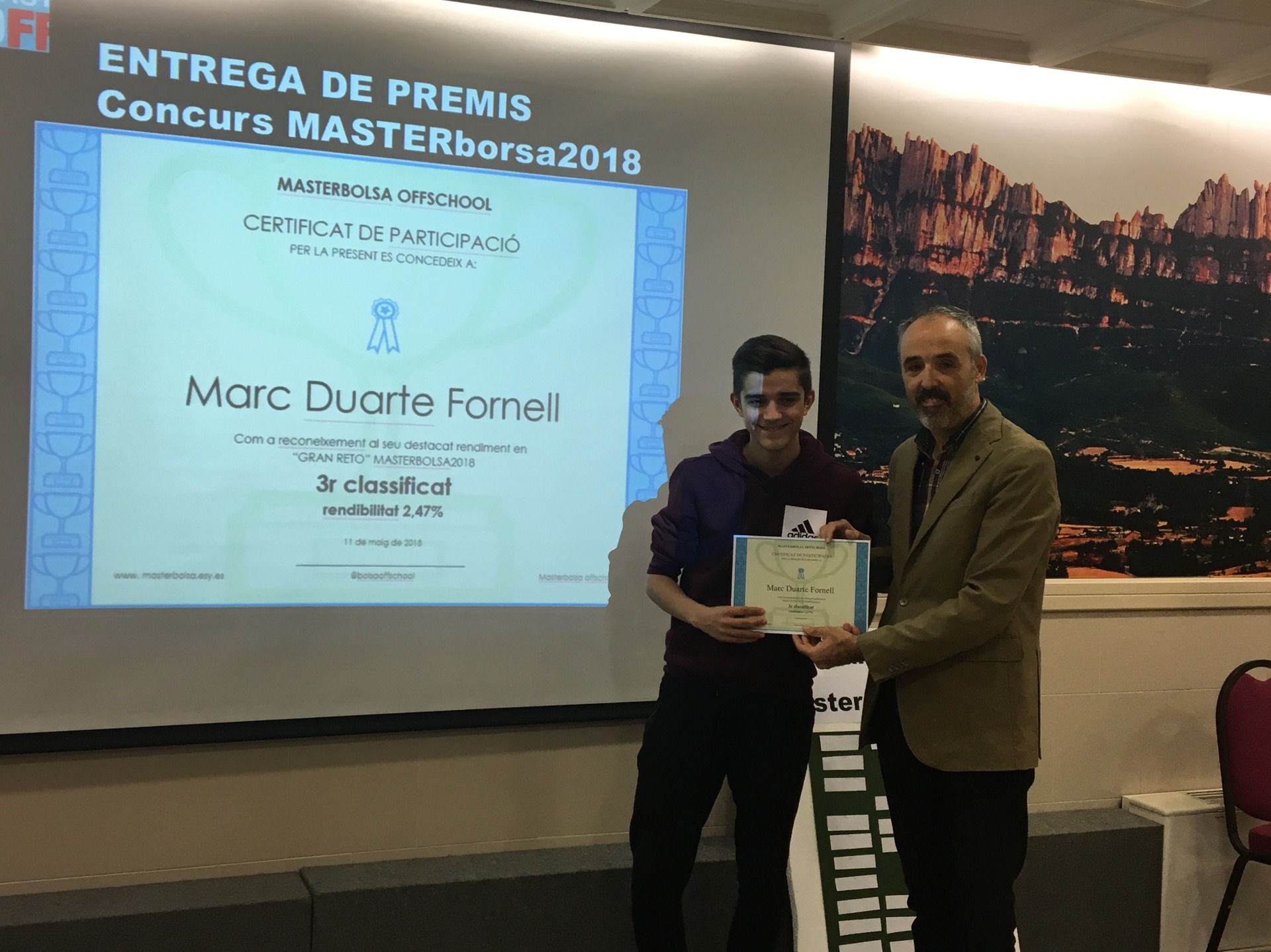 - 3r classificat: Marc López amb un 3,77% de rendibilitat de l'Escola Vedruna Escorial de Vic.