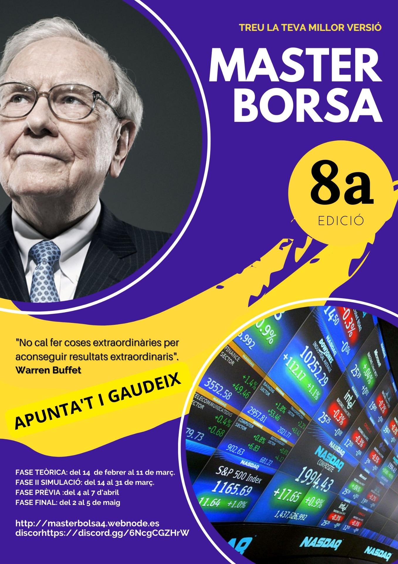 ja tenim el nou pòster de la 8a Edició de MASTERBOLSA 2022. Ha estat seleccinart del 18 pòsters rebuts dels participants.